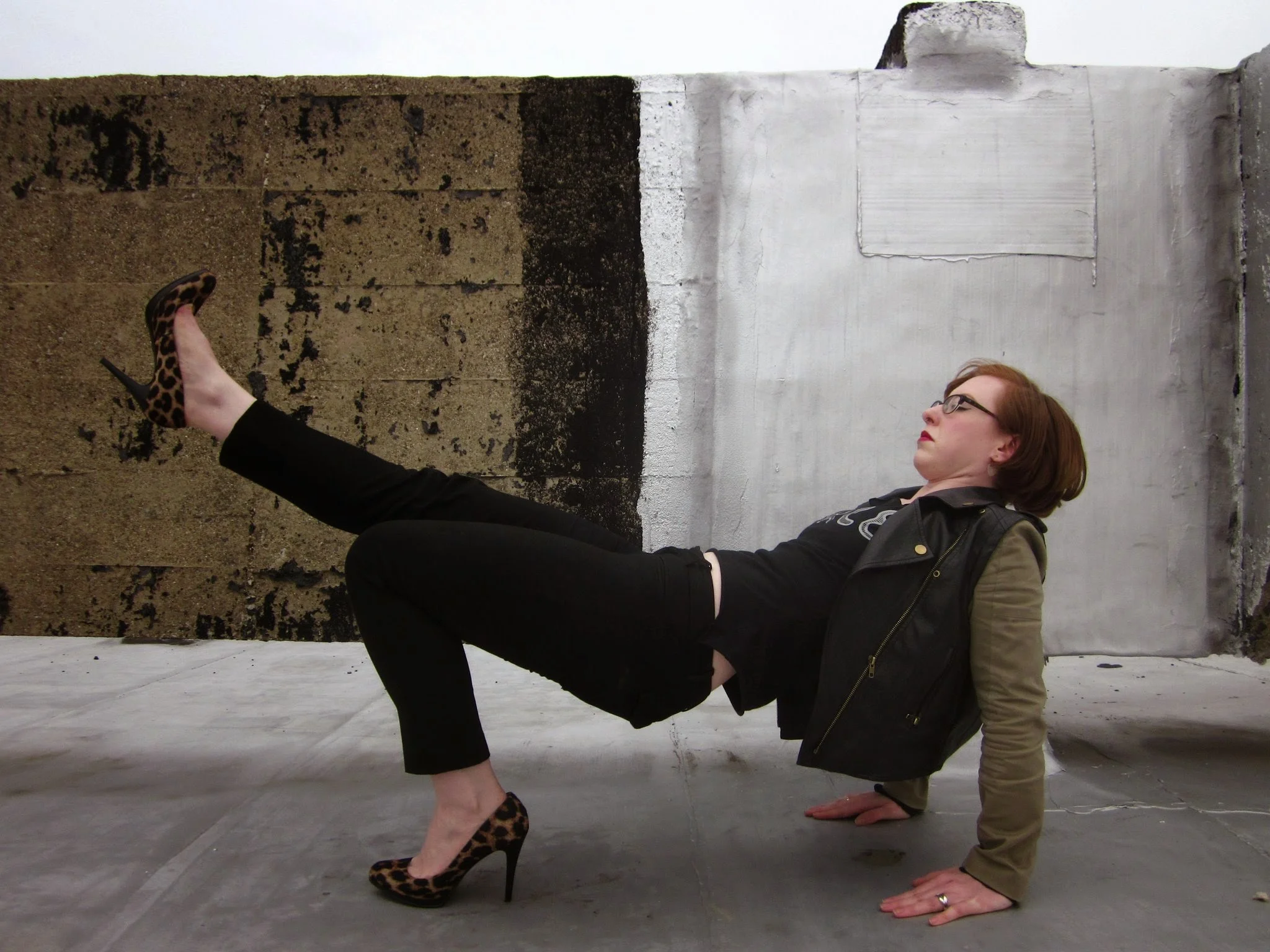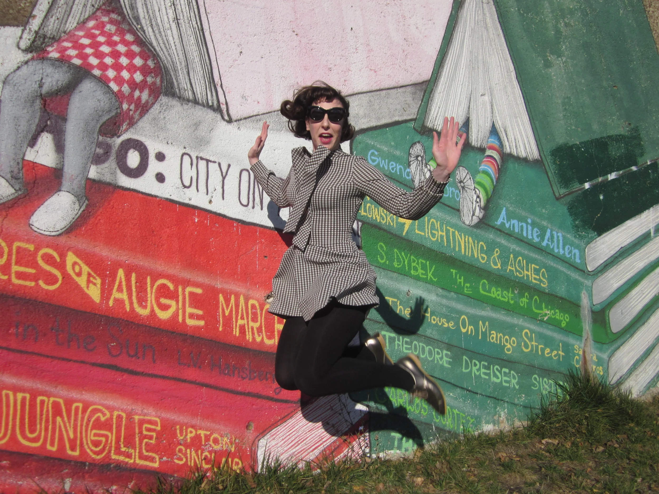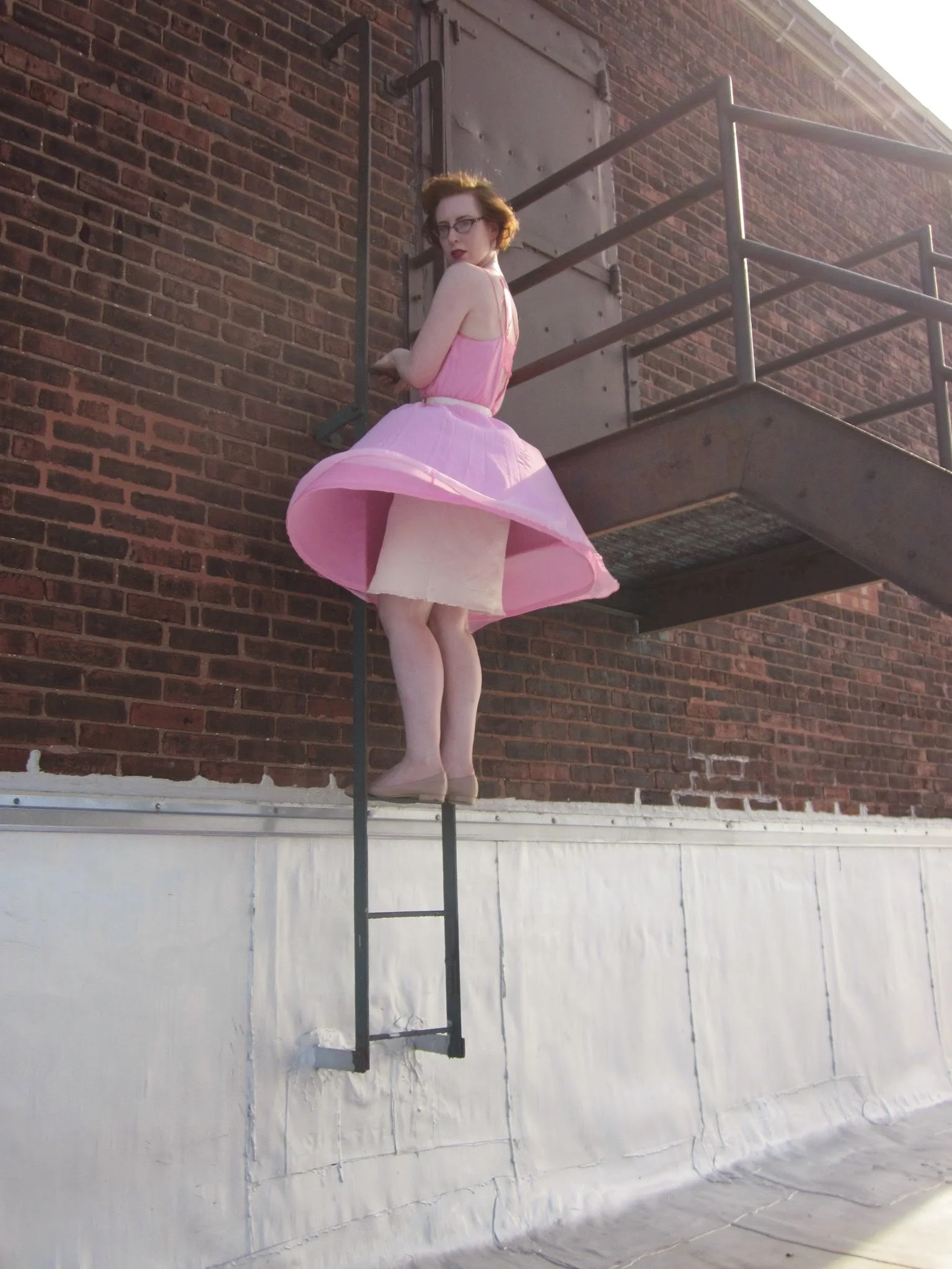 Just goes to show, a jump shot isn't much easier. My hair, my glasses, and my dress all look like they're ready to jump ship.