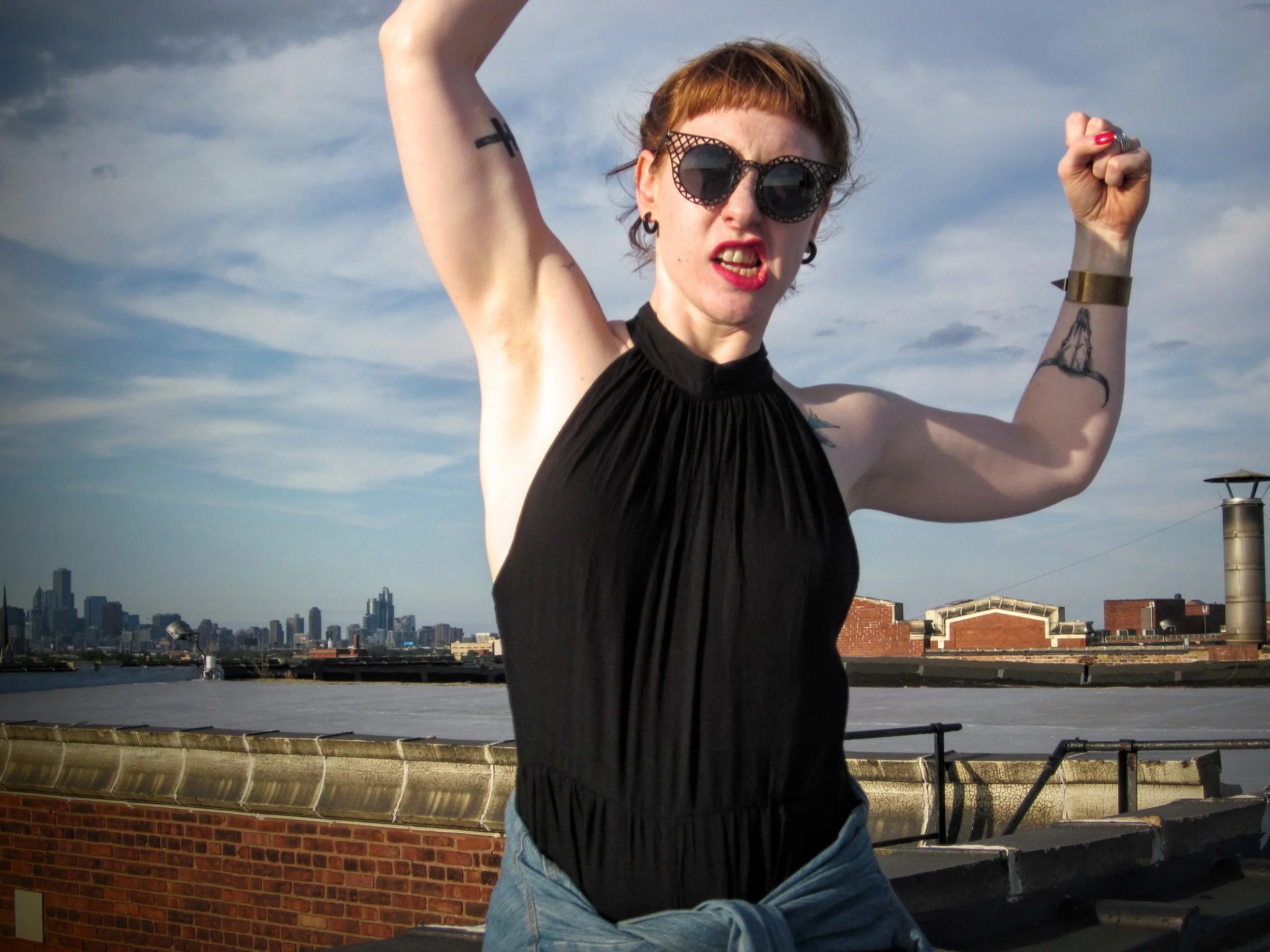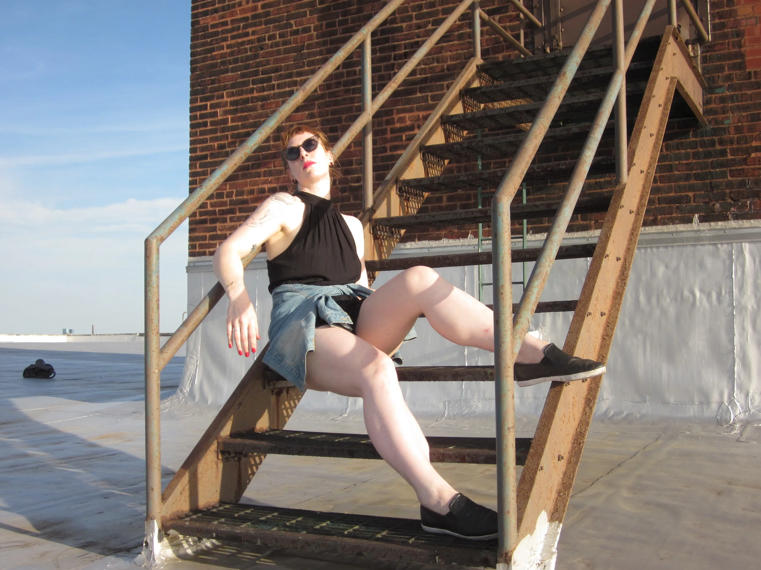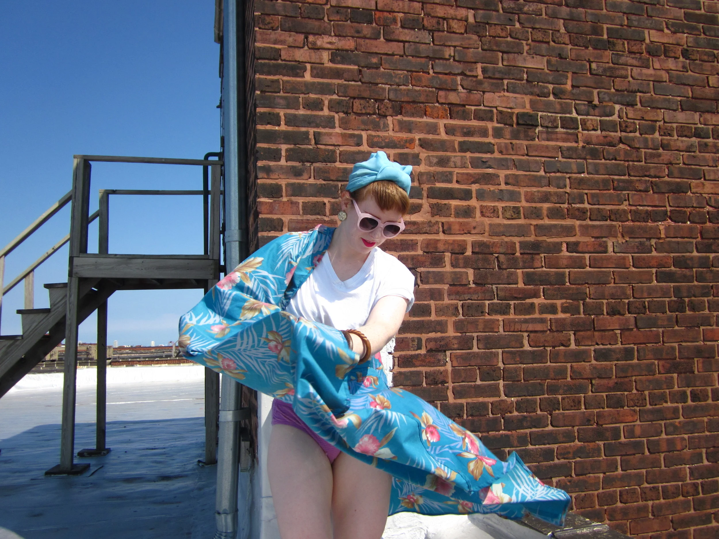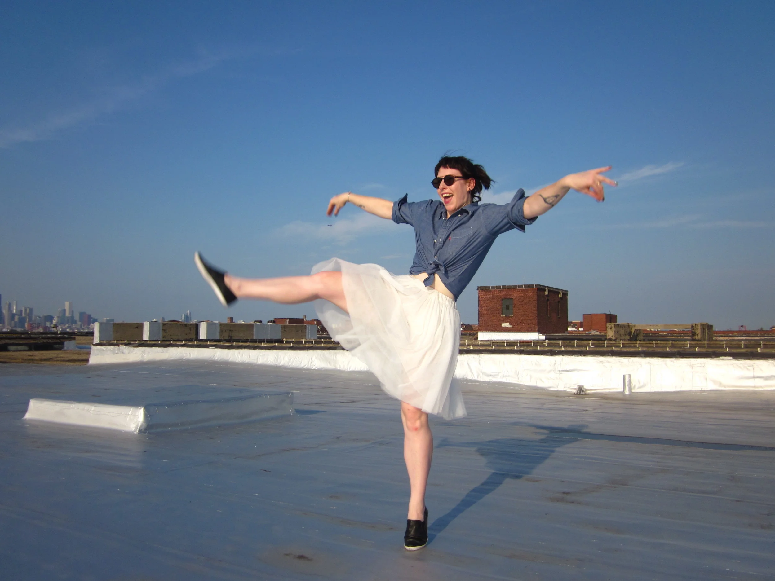 Just goes to show, a jump shot isn't much easier. My hair, my glasses, and my dress all look like they're ready to jump ship.