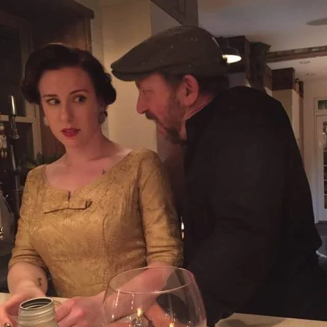I didn't get any full length photos of my dress, but I love this photo of my friend and I. There was some song playing that seemed vaguely predatory, so I was scooting away and looking concerned while he was dancing up on me. I think the results are hilarious.