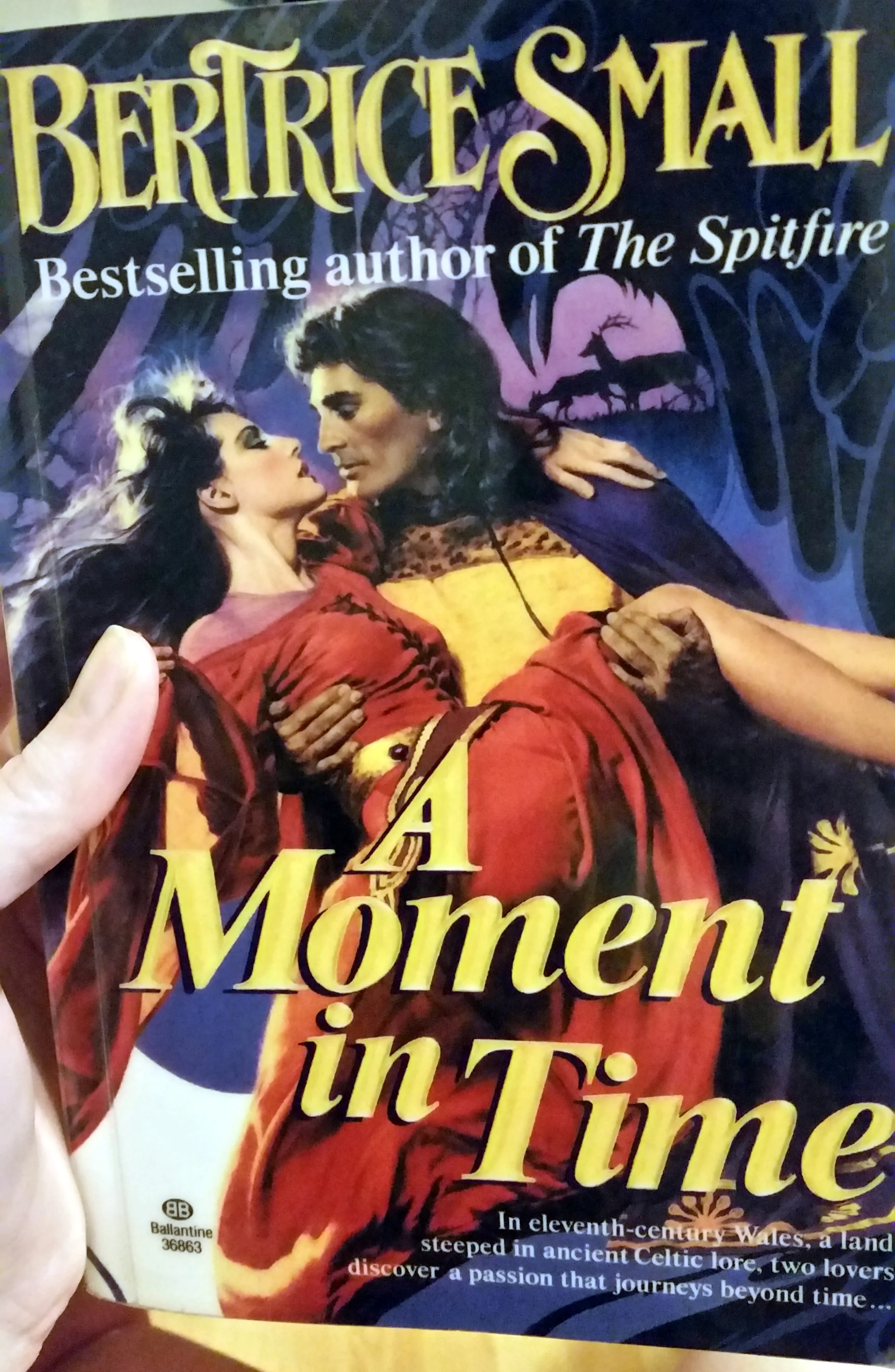 This time, I read A Moment In Time by Bertrice Small, published in 1991. Here's the cover.