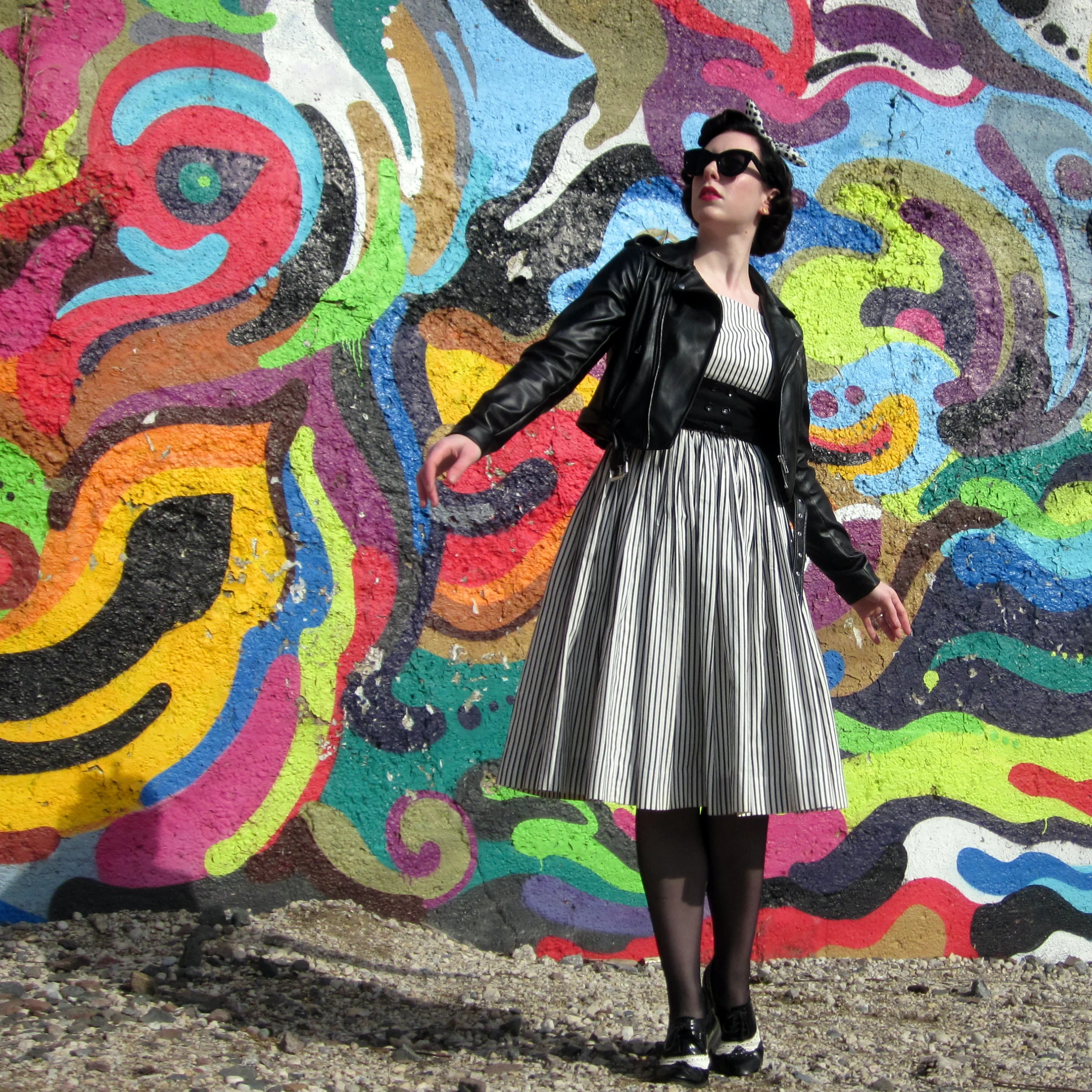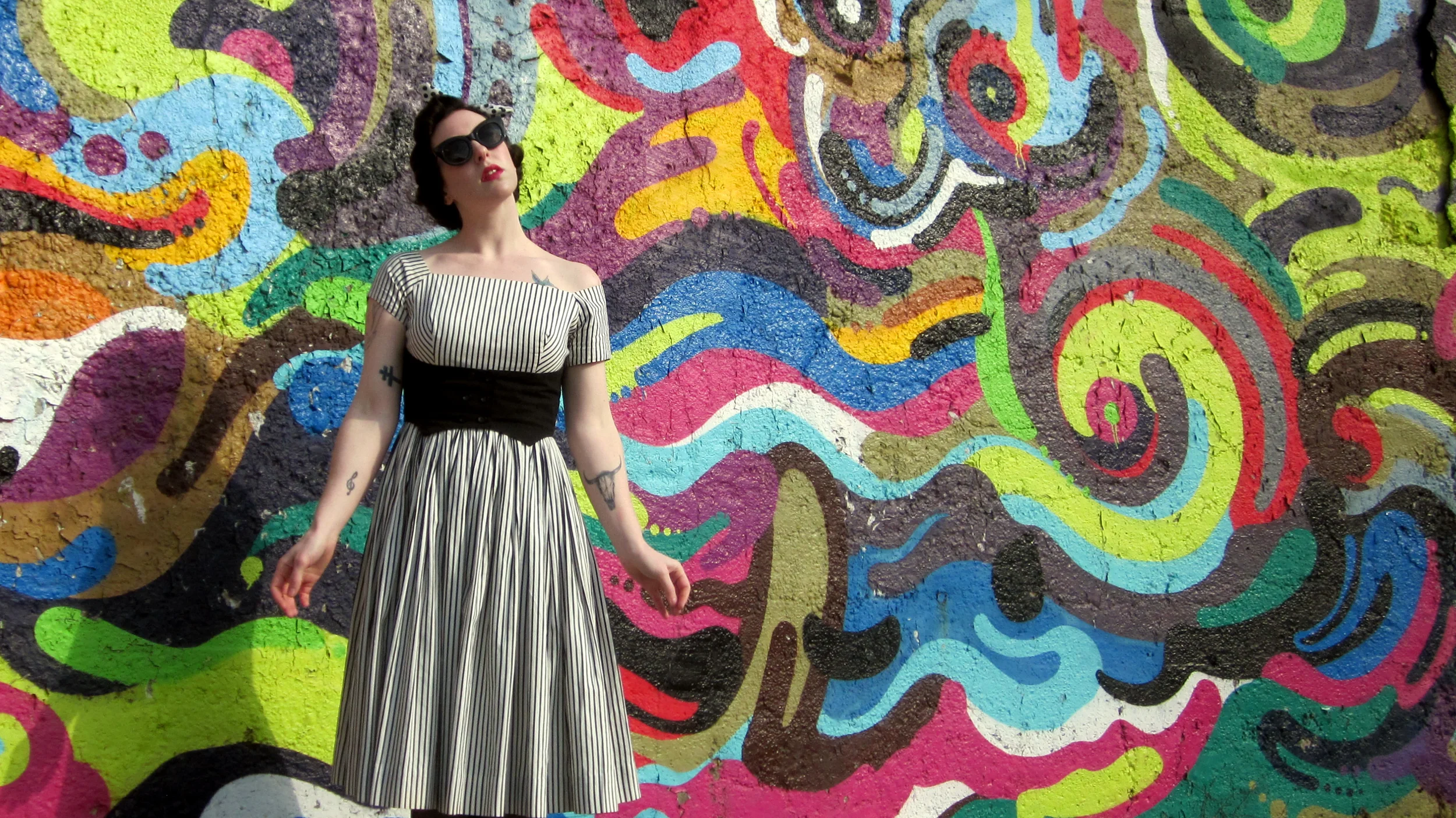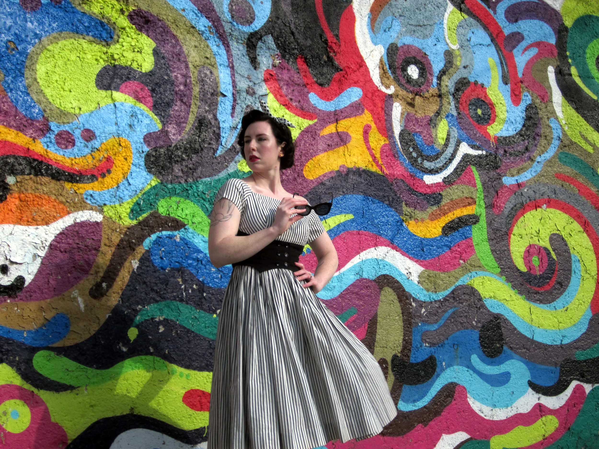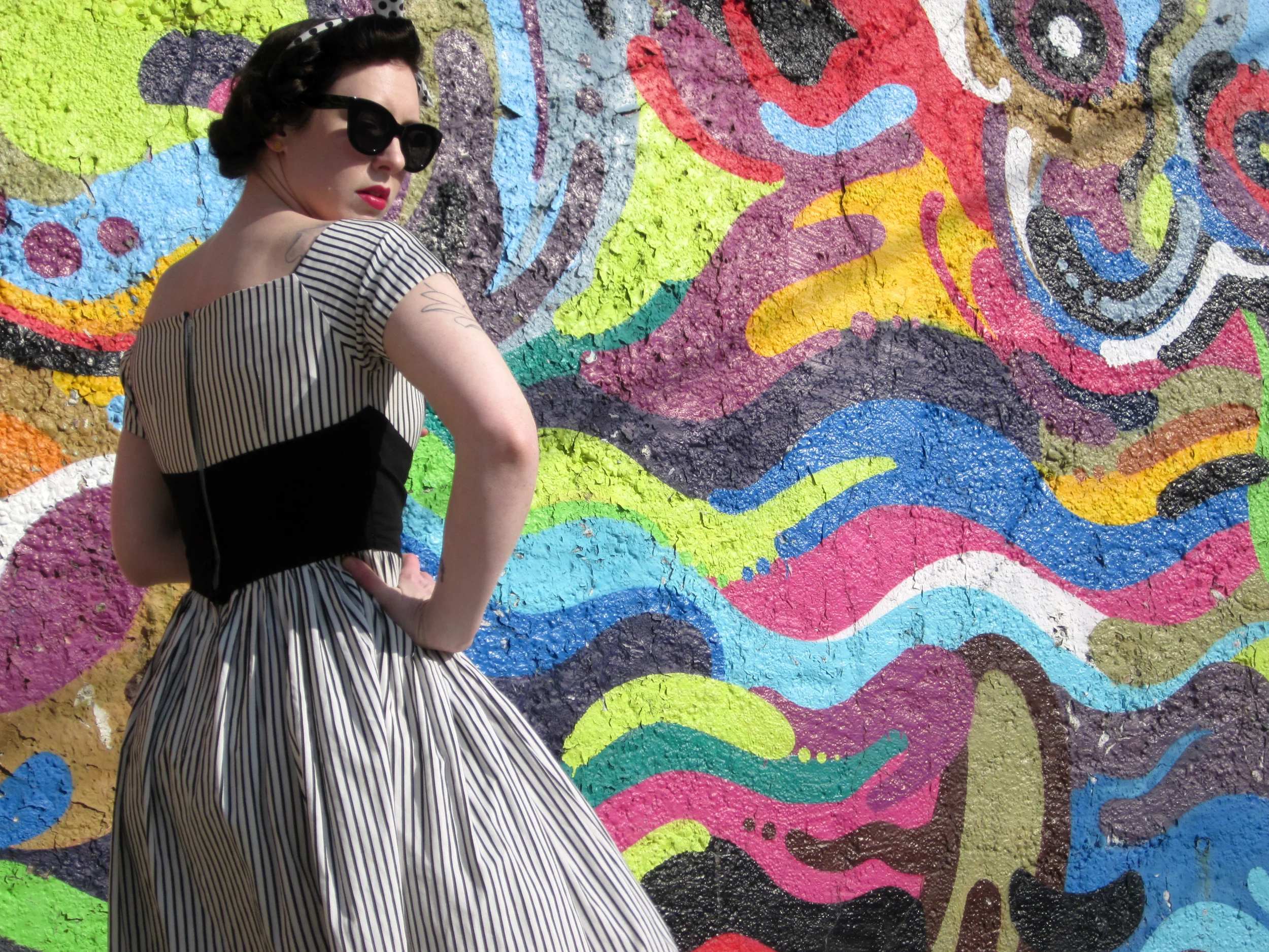 I almost didn't buy it - as I said above, I hardly need another party dress to hang in my closet, depressed that I don't take it out to more parties - but I love the black and white stripes, the little vest/corset/belt/whatever detail, the wide, almost off the shoulder neckline. If I hadn't tried it on, I probably could have left without it, but you know how it is when you put something on and you really like it, and you've already basically given yourself permission to buy it, and then the store owner looks at the tag and is like "for you, 25% off!" It would take someone with a much stronger will than I have to walk out without it.