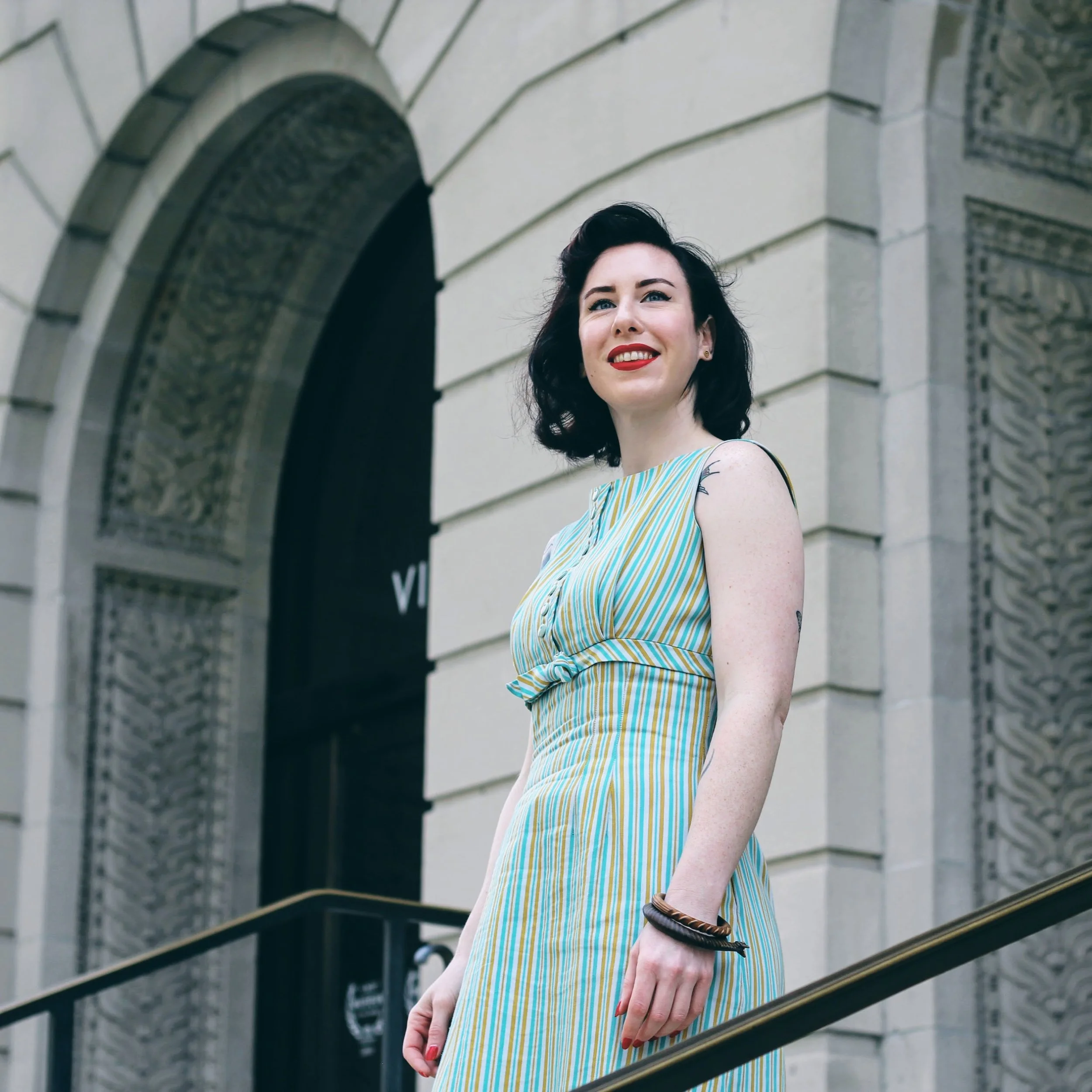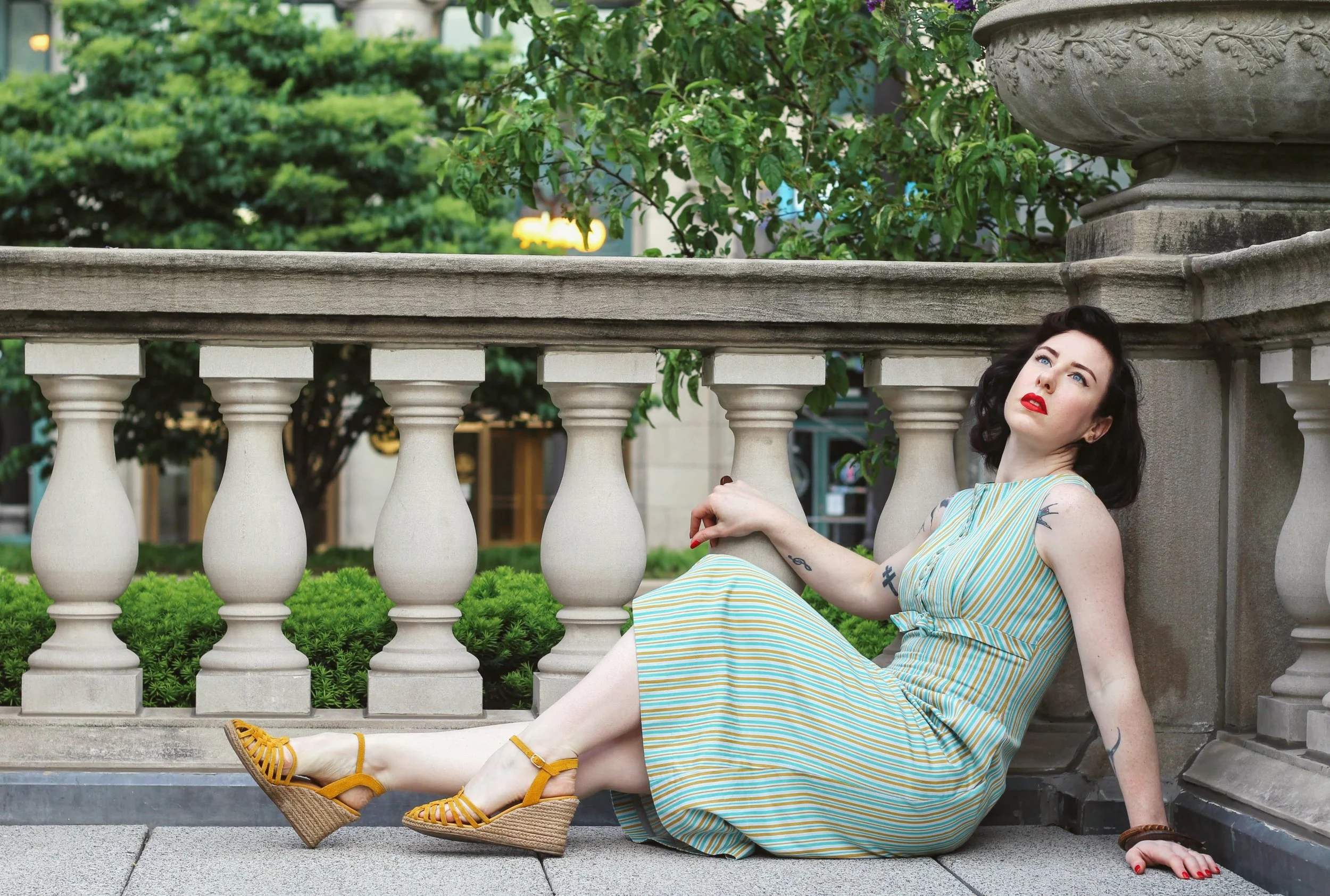 I decided to spend a day playing tourist in my own city. There's something about this dress that always struck me as 1950s or 1960s Italy, so I built a story in my head of an Italian woman from that era paying a visit to Chicago.