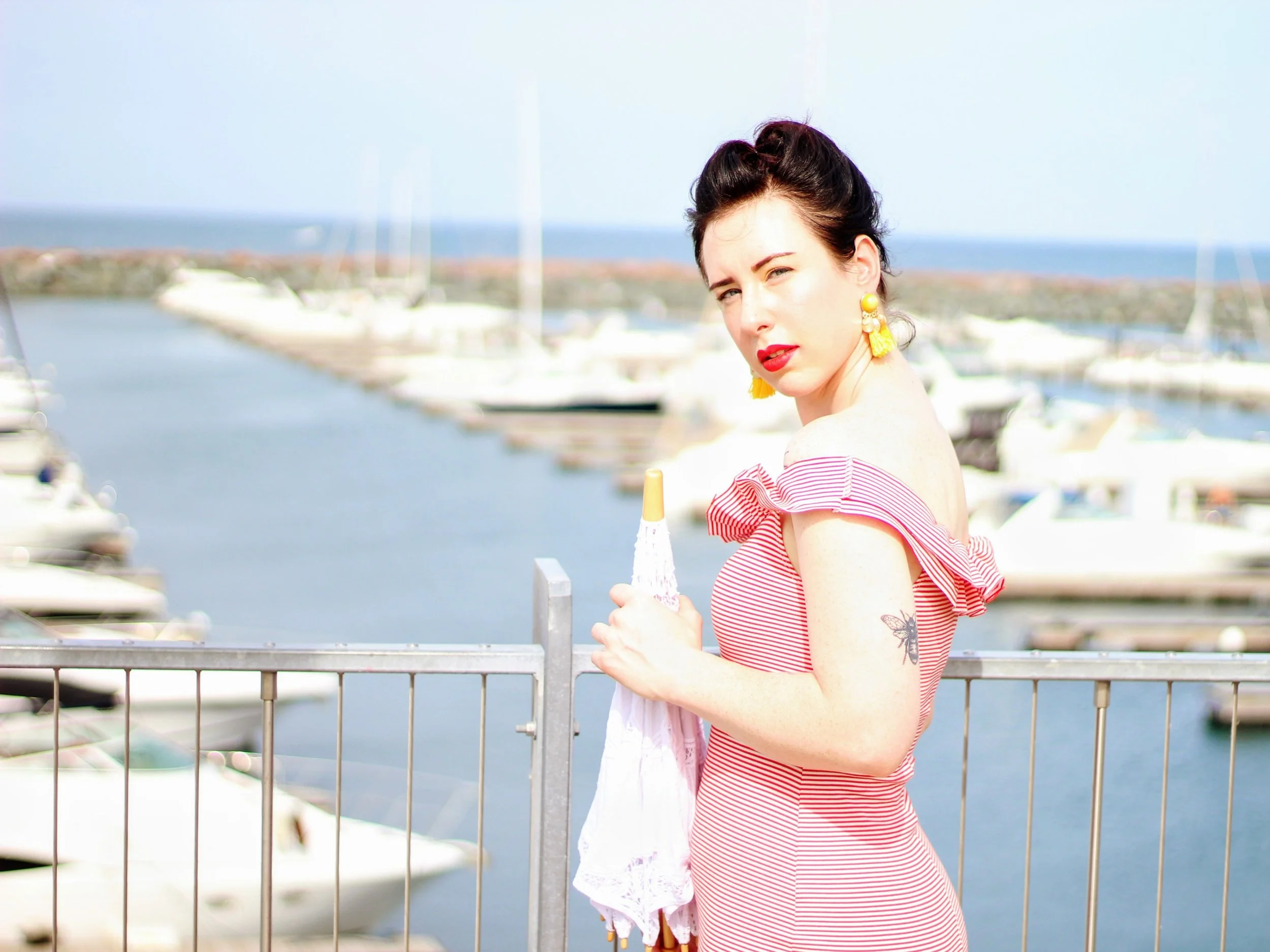 This dress makes me feel like quite the bombshell. Red, off the shoulder, body-con. It's a bit of a departure from my usual style, but what's the fun in playing in safe all the time? It's fun to walk into a room sometimes and feel like you're commanding attention. Not going to lie, though - even with shapewear on, I still spent a lot of time sucking in my stomach.